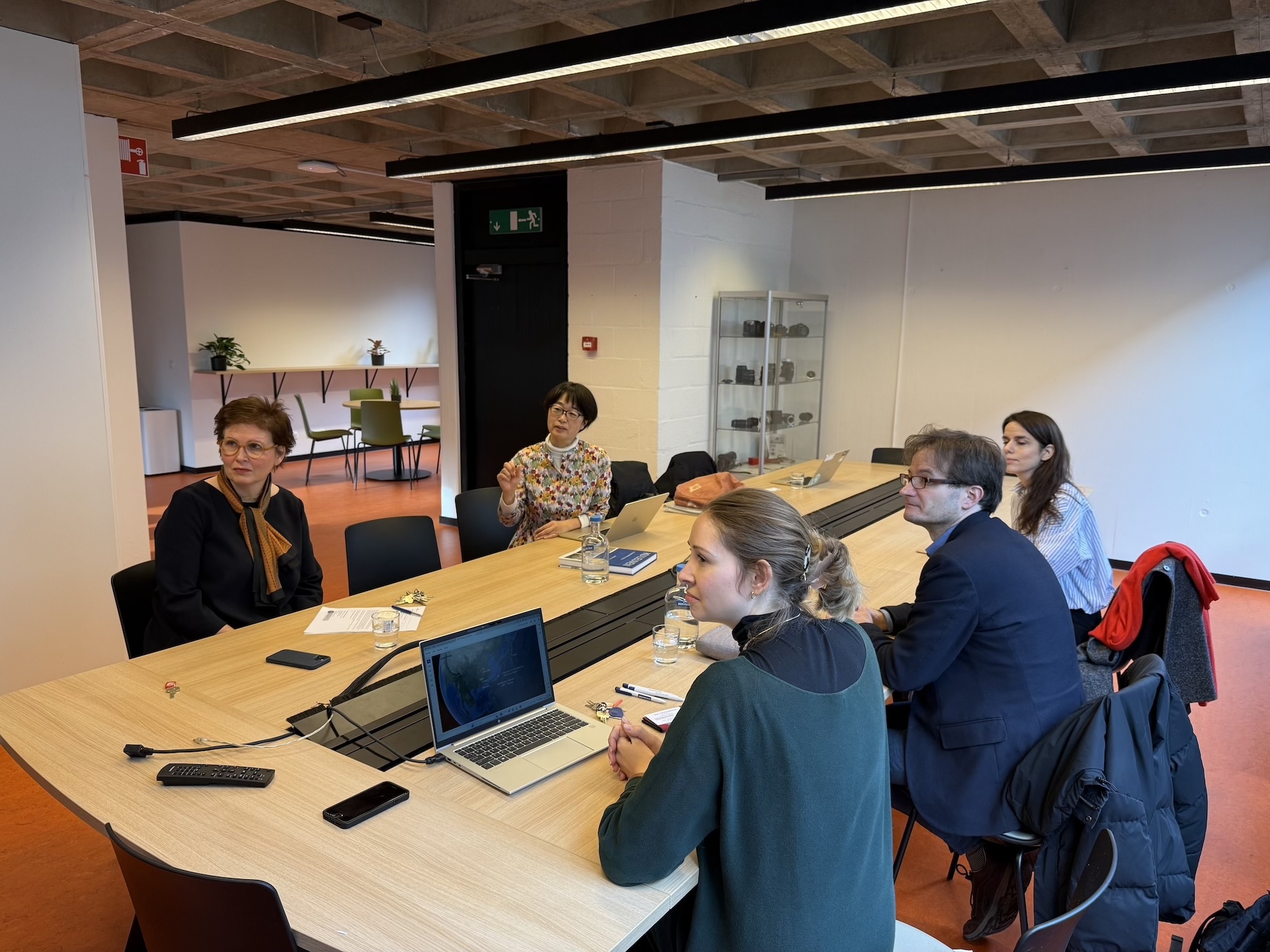 次に行ったLiesbet Heyvaert文学部長らとの面談では、琉球大学との教育研究協定に基づき、琉球大学ならびにSIプログラム受講生が、文学研究科のサービスラーニングをはじめとした科目や、ルーヴェン・カトリック大学全体で実施しているサステナビリティ研究をベースにしたサマースクールなどの授業に参加することについて承諾を得られた。さらに今回の訪問調査では、ルーヴェン・カトリック大学におけるICTを活用した対話型授業への参加や附属図書館における日本史料を中心とした書籍やデータベース等の解説など、貴重な機会をいただいた。現在、琉球大学ではSI研究グループと教育プログラム検討委員会との連携により、本調査で得られた情報や学生ニーズのヒアリングなどをもとに、専門知の深化と沖縄の社会課題を多角的に理解することのできる新たな3大学交流型授業科目(2026年度開講予定)の教育プログラムを開発しているところである。